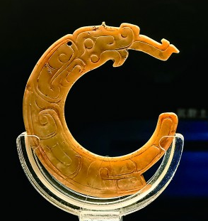 距今4500年前后,在山西襄汾陶寺王人邑遗迹最高等别大墓出土的陶盘上,有彩绘口衔神禾的蟠龙纹图像,当为“王”的身份标记物。而后,又在陶寺大墓IIM22中发现龙面玉牌饰,在山东日照两城镇遗迹发现龙面纹玉圭,在山东临朐西朱封大墓发现龙面形玉笄头。这些龙面王人是上有“介”字形冠,且额头两侧有上翘角状物的形象。在陕西神木石峁、湖北天门石家河等王人邑遗迹,龙凤形象就更多了。